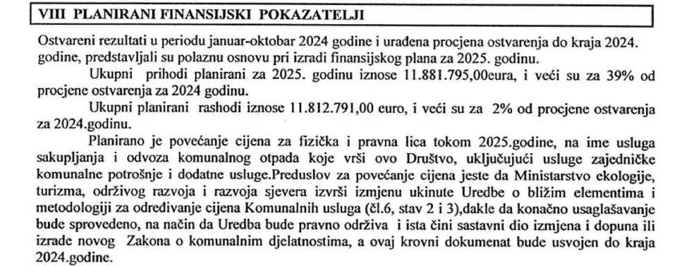 – Preduzeće Čistoća planira da uveća cijene usluga prema građnima Podgorice za 40 procenata u 2025. godini. Ovo je još jedan efekat programa Evropa sad 2 - rast cijena usluga Čistoće i Vodovoda - saopštio je Klikovac.