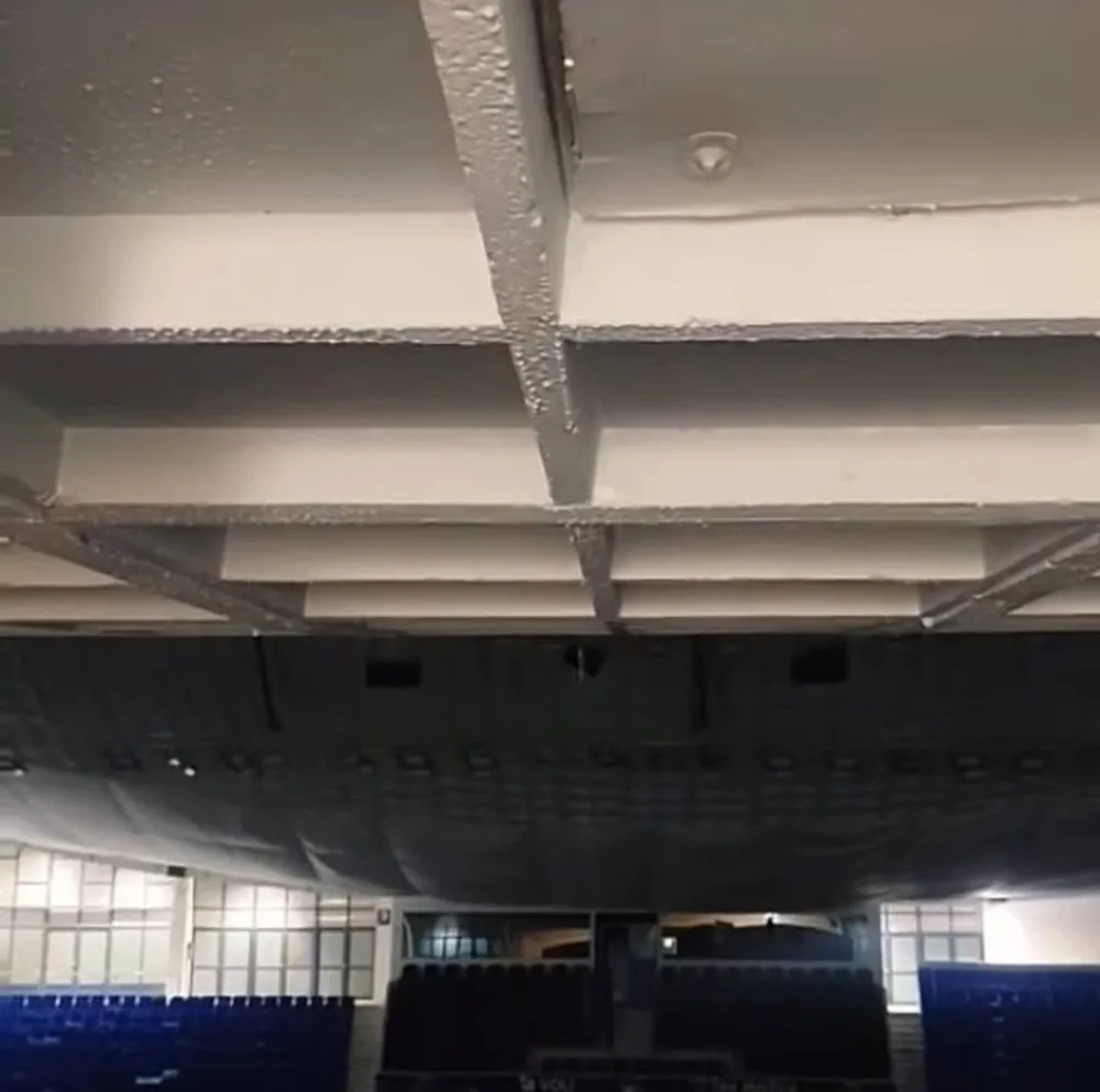 Odbornik DPS-a u Skupštini Glavnog grada Stefan Šaponjić objavio je na društvenim mrežama fotografiju krova M:tel dvorane "Morača" koji prokišnjava.