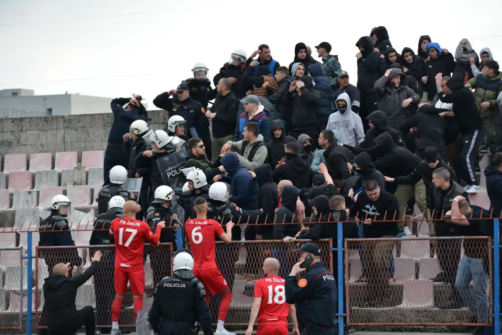 (FOTO) Mučne scene na utakmici Čelik - Zabjelo: Divljanje i na tribinama i na terenu