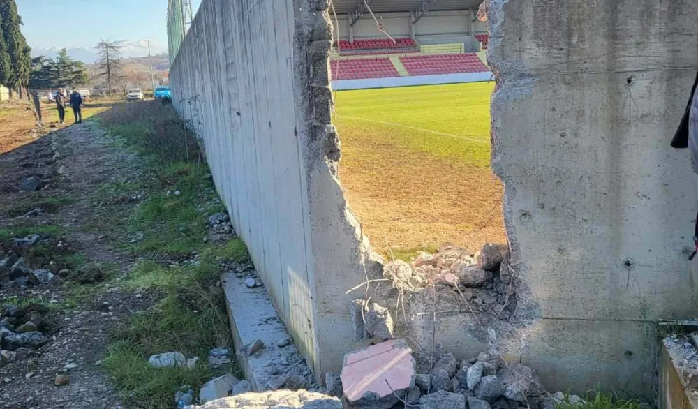 Mašine preduzeća Zaštita prostora počele su uklanjanje betonske ograde u blizini reflektora stadiona DG Arena. Da bi prišli betonskoj ogradi, prethodno su uklonili dio žičane.
